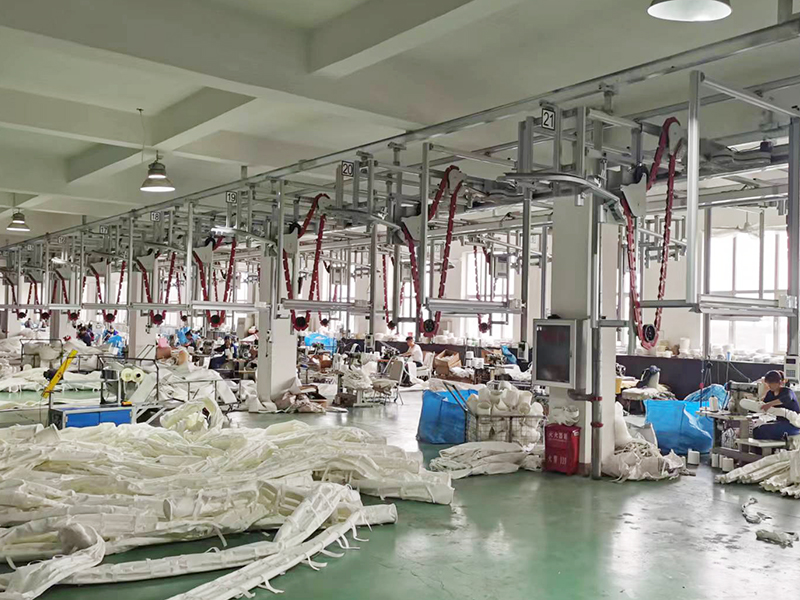 引進德國、英國兩條先進的濾料生產線,采用全自動進口縫合生產線和熱能粘合縫制濾袋,具有日產1萬平過濾材料、2000條各種濾袋生產能力